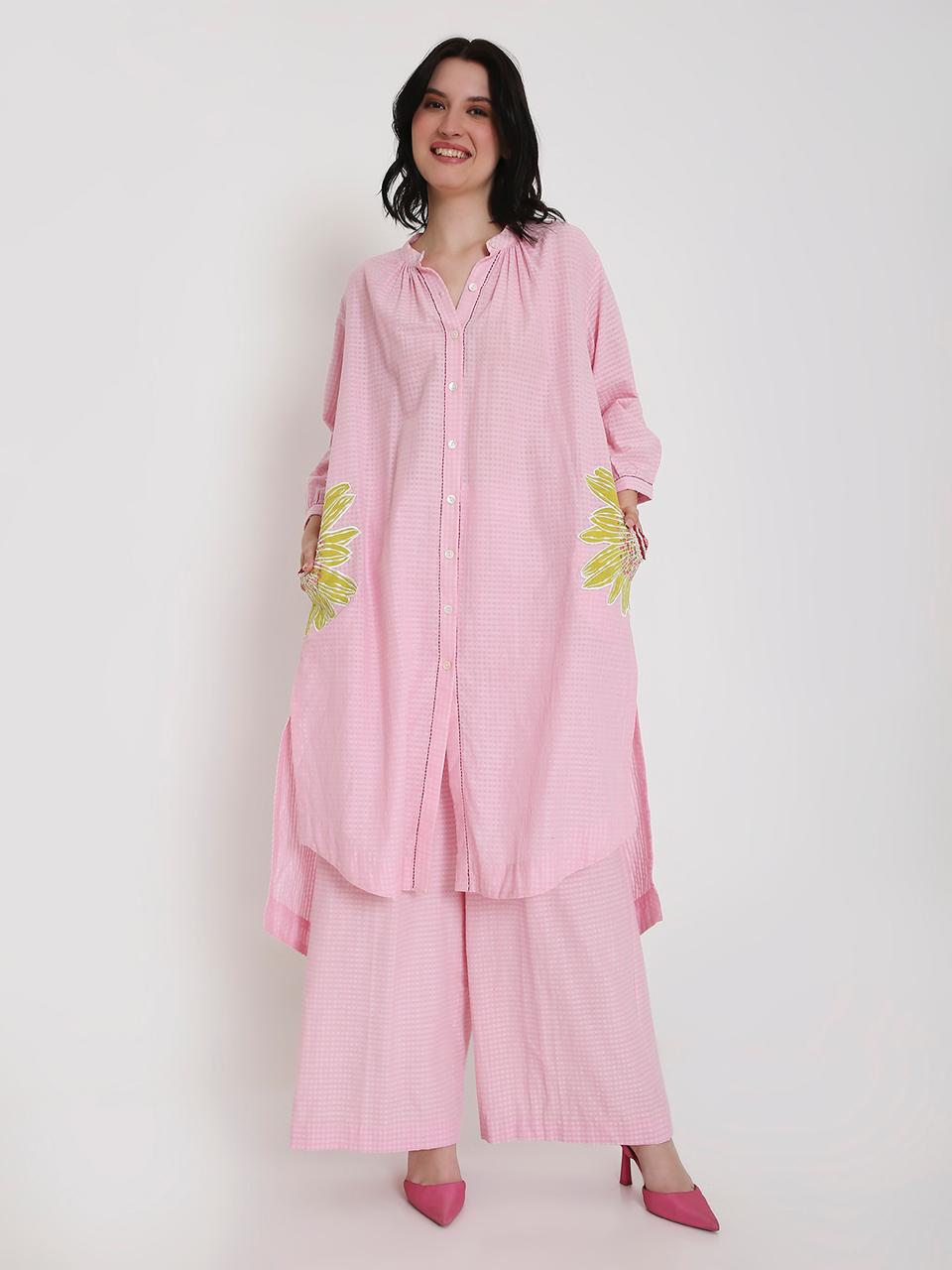 Green Checks print fabric with plazo pant very comfortable fitting and small color